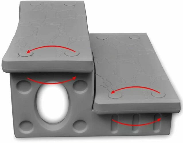 Näissä portaissa on 2 käännettävää porrasta, joissa on suorat ja kaarevat reunat, ne soveltuvat suoraseinäisiin ja kaareviin kylpyammeisiin.
